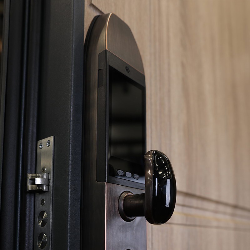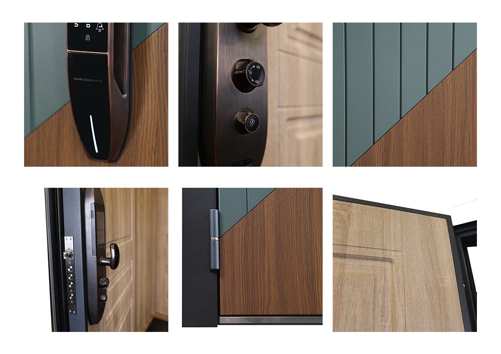 Фурнитура: Функции дверной ручки и глазка интегрировваны в дверной замок.